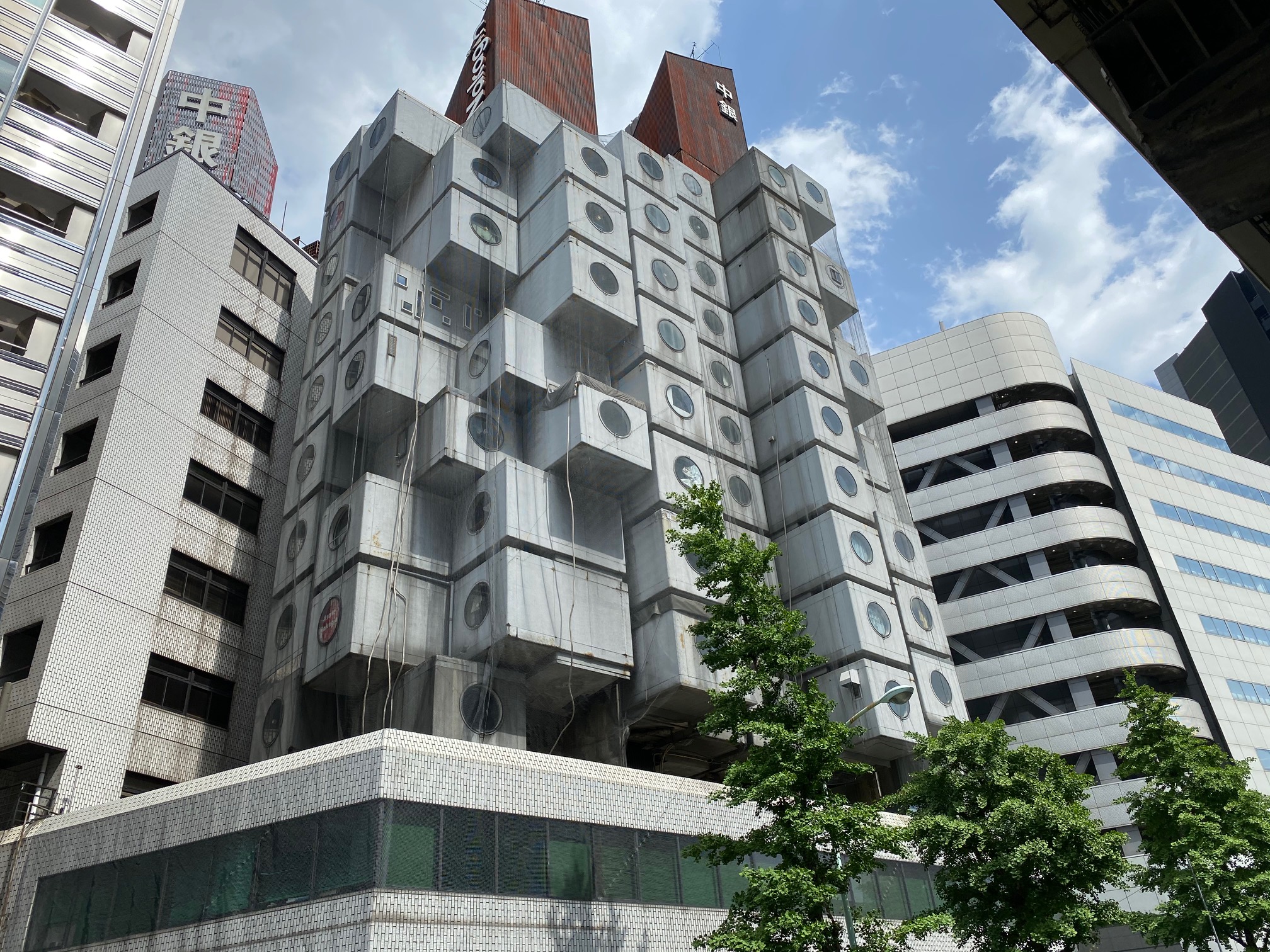 黒川紀章さん設計の「中銀カプセルタワービル」。 敷地が売却が決まったというので、なくなる前に 見に行ってきました。メタボリズムの代表的建物、 近未来を感じさせる名建築がなくなるのは残念